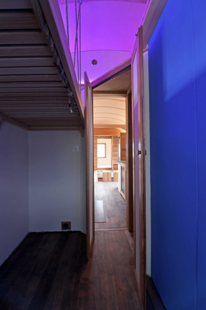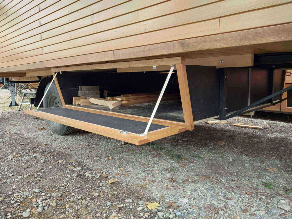 Wagen Hobbit Sitzecke – Sitzbank mit Stauraum. Mit den Brettern können flexibel ein oder zwei Schlafebenen geschaffen werden.
