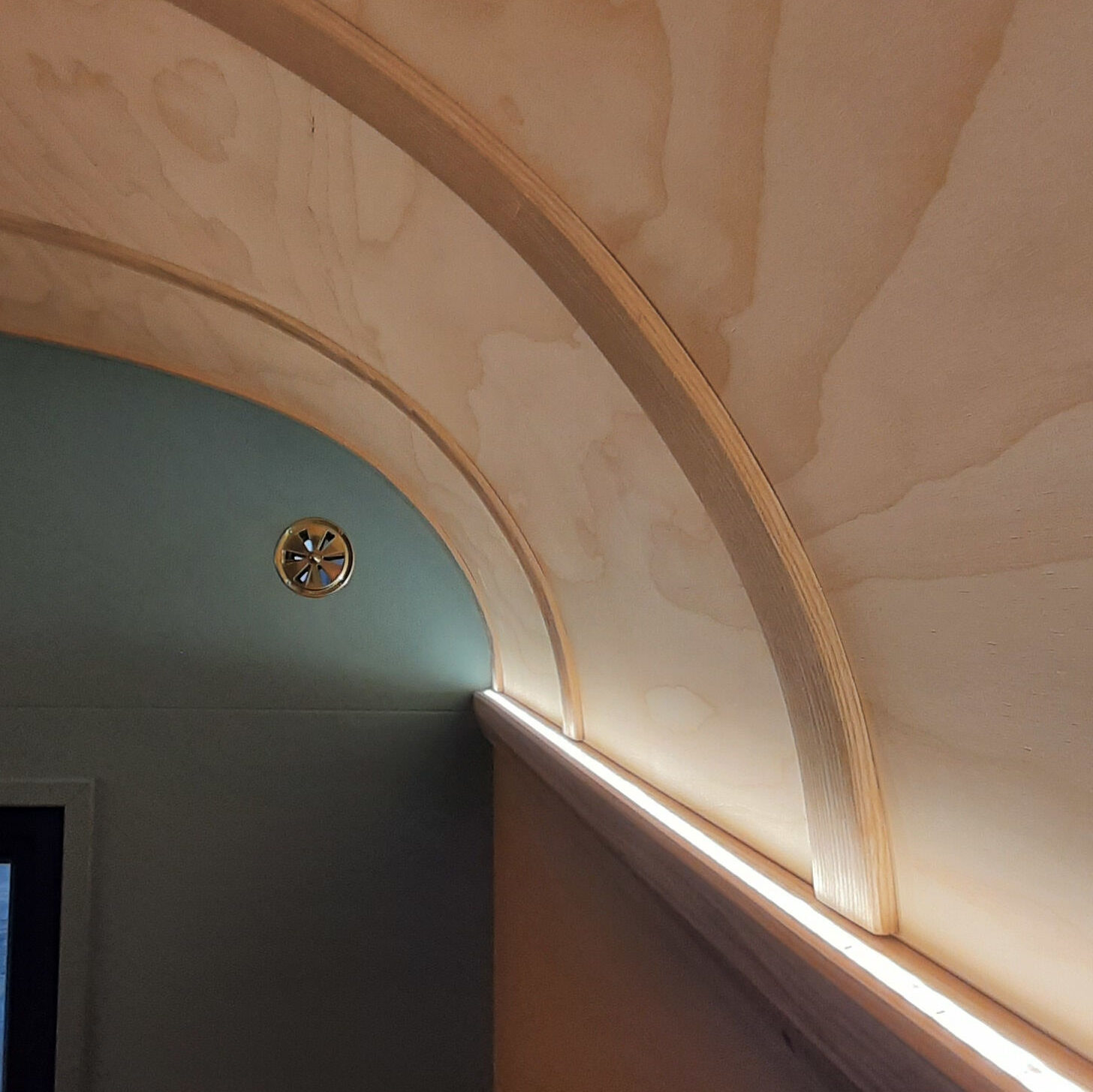 Diese kann bei guter Planung Unterputz bzw. hinter der Sperrholzverkleidung montiert werden oder Aufputz, verdeckt mit Kabelleisten aus Holz.